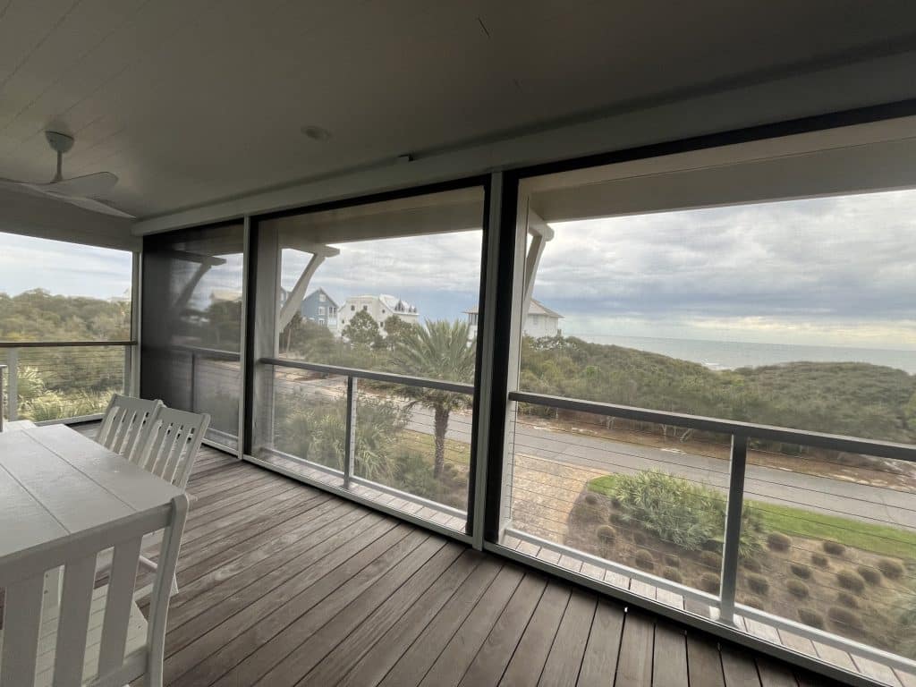 Motorized Screens are a great way to screen in your patio or porch. Here on St. George Island there are a multitude of no-seeums and mosquitos. But not all the time. This is where motorized screens come in.