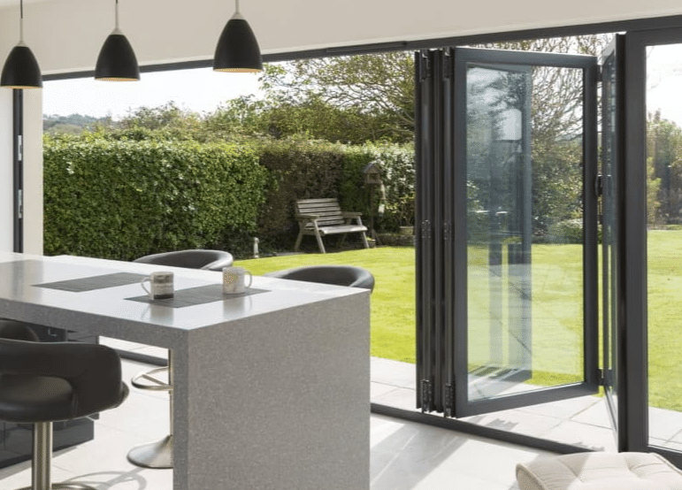 Origin Folding Doors offers Thermal Aluminum with crisp lines. Great for a clean modern look.